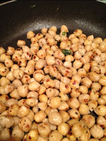 Whisk and pour over the chickpeas. I shake them every now and then. You’re looking for some dark crisp edges.