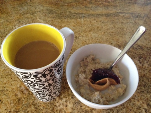 Breakfast was my standard pre-run eats: Oatmeal and coffee.