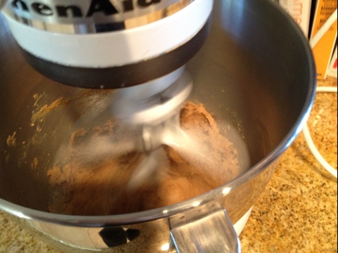 7. Add dry ingredients in three parts, mixing each time until combined.
