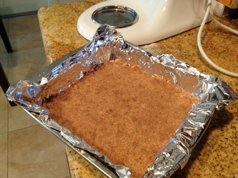 9. Spread the mixture in the pan into an even layer, pushing firmly to form a solid crust.