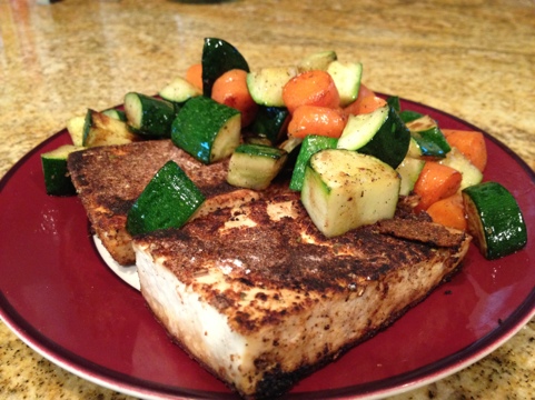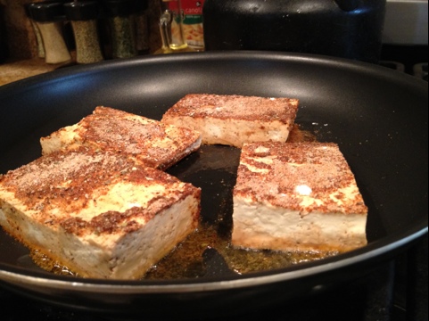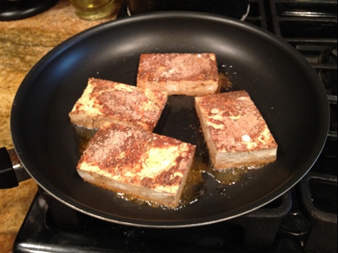 Last night I set out to try a new to flavor my tofu. I saw this recipe and decided to give it a whirl. Click over to see the recipe, which I followed pretty much to a T.