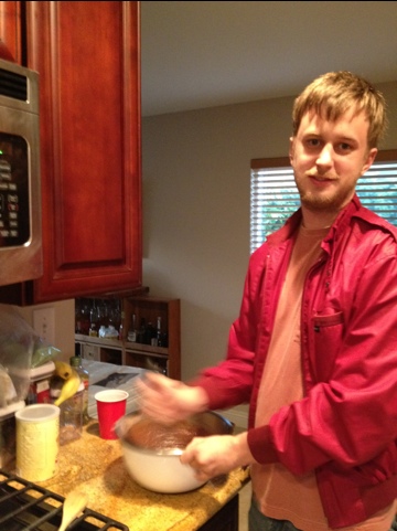 While Will doesn’t think he’s very capable with baking, he’s actually more knowledgeable than he thinks. As he tapped the pans on the counter, he explains, “It’s to get all the air bubbles out.” Well look at you, Mr. Chef.