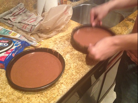 Since Will’s dad is coming into town tonight, we spent last night attempting to make an ice cream cake as a belated birthday treat. Since this cake is for Will’s dad, I let Will take the lead. Cookies and cream was decided and Will opted to make it from a box since that’s what he feels more comfortable with.
