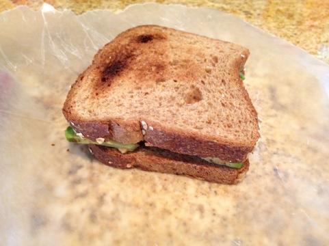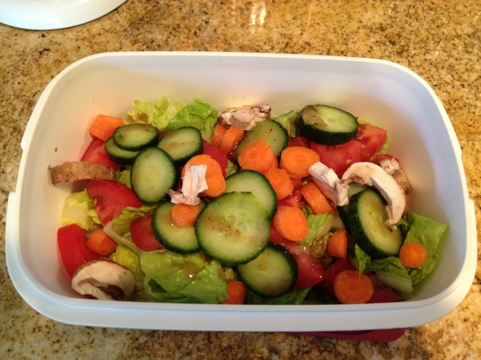 A big salad, made of the same veggies I used to top the quinoa, and a hummus and avocado sandwich on the side. All included, I probably spent 20 minutes max (and that includes clean up) and I made a healthy dinner and lunch for tomorrow!