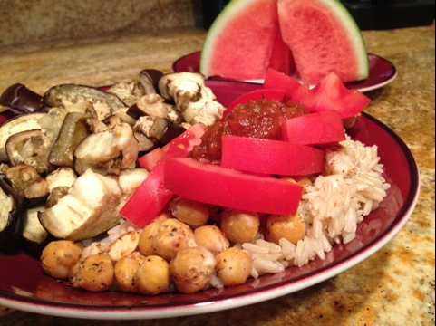 Wish I could say the same for the rest of the dinner. The eggplant, as mentioned, was a little too soggy and the rice and chick peas each tasted good on their own but I wanted more flavor out of the combination and even with the salsa/tomato addition, it was still lacking.