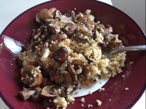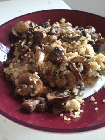 Okay, okay. Mushrooms alone don’t make a full dinner. So I had them over some quinoa (protein plus carb) and some extra red pepper hummus spooned over the top for additional protein (but mostly just for fun).