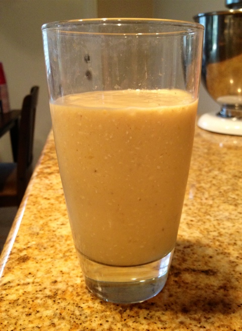 I went with mango because it’s the most interesting of frozen fruit stash. New additions to the smoothie were oatmeal and orange juice, both of which turned out perfectly!